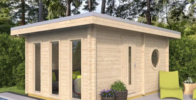 – Flachdach-Gartenhaus Modell Felix 28 (300 x 400 cm, 28 mm Wandstärke)